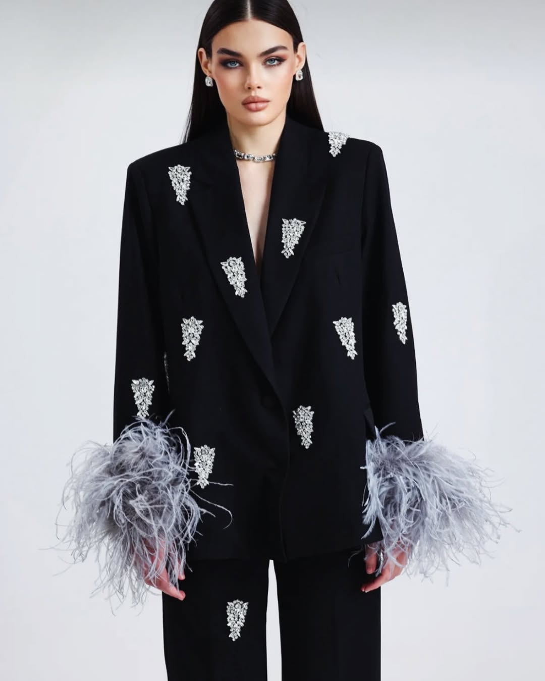 بدلة سوداء مرصعة بأحجار الراين
